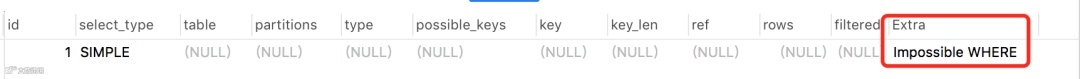 Extra(查看附加信息:排序、临时表、where条件为false等)