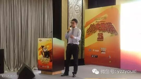 《功夫熊猫3》手游产品经理刘犀先生在品鉴会上介绍了产品众多特色。