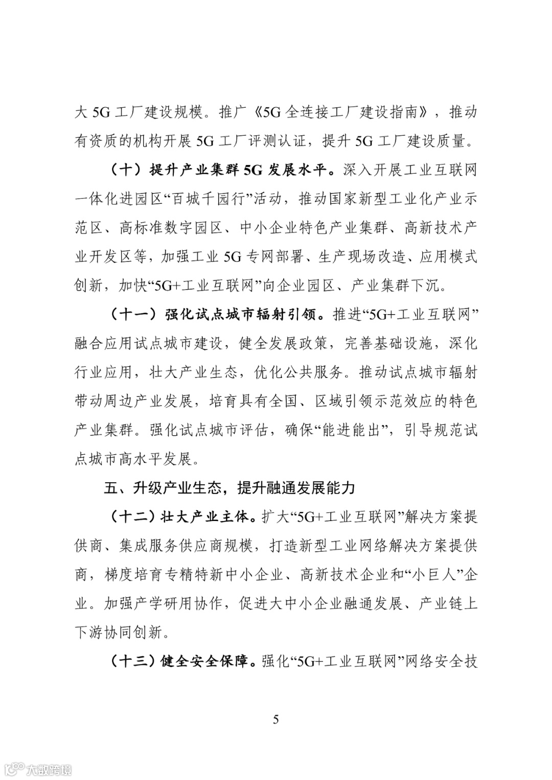 以下为《打造“5G+工业互联网”512工程升级版实施方案》全文: