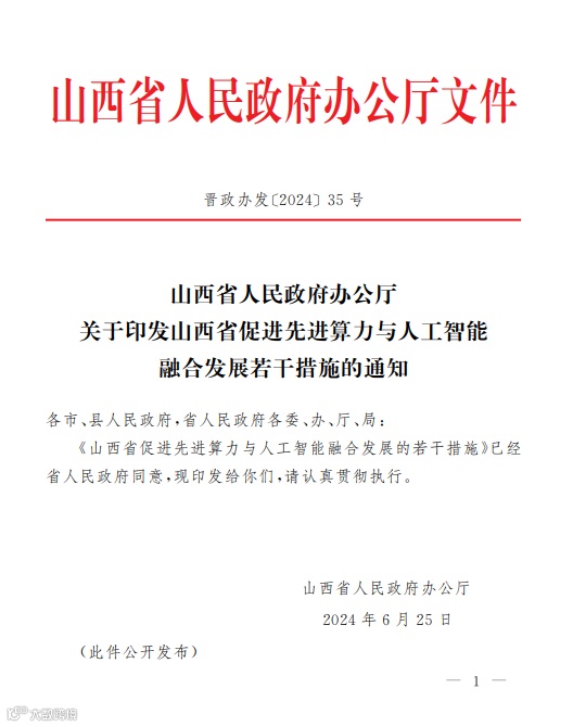 7月10日,链向科技集团从山西省政府网站了解到,近日,山西省政府办公厅印发了《山西省促进先进算力与人工智能融合发展的若干措施》,从支持算力高质量发展、支持提高算力应用水平、支持人工智能大模型发展、加强能源人才土地供给四方面提出17条措施,以充分发挥我省算力资源优势,实现先进算力与人工智能协同发展,因地制宜发展新质生产力,闯出数字经济创新发展新路,构筑新发展阶段我省高质量发展的强劲引擎。