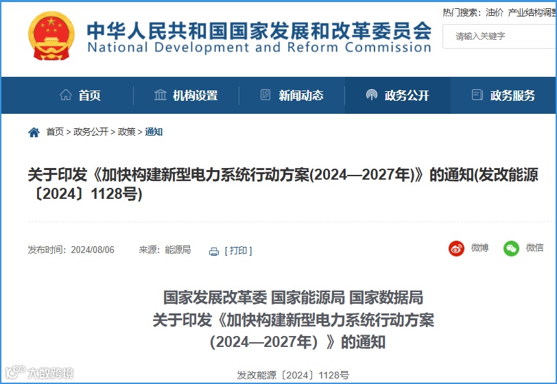 8月6日,链向科技集团从国家发改委网了解到,近日,国家发展改革委、国家能源局、国家数据局印发《加快构建新型电力系统行动方案(2024—2027年)》,聚焦近期新型电力系统建设亟待突破的关键领域,选取典型性、代表性的方向开展探索,以“小切口”解决“大问题”,提升电网对清洁能源的接纳、配置、调控能力。