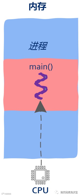 注意,这是一个和进程不同的概念,创建进程时我们需要在内存中找到一块合适的区域以装入进程,然后把CPU的PC寄存器指向main函数,也就是说进程中只有一个执行流。