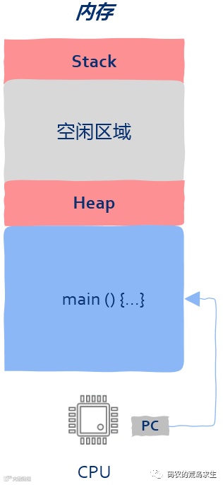 接下来的问题就是CPU从哪里取出指令呢?答案是来自一个被称为Program Counter(简称PC)的寄存器,也就是我们熟知的程序计数器,在这里大家不要把寄存器想的太神秘,你可以简单的把寄存器理解为内存,只不过存取速度更快而已。
