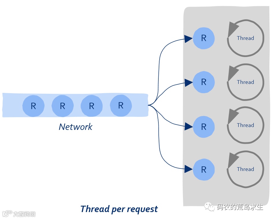 这种方法通常被称为thread-per-request,也就是说来一个请求就创建一个线程: