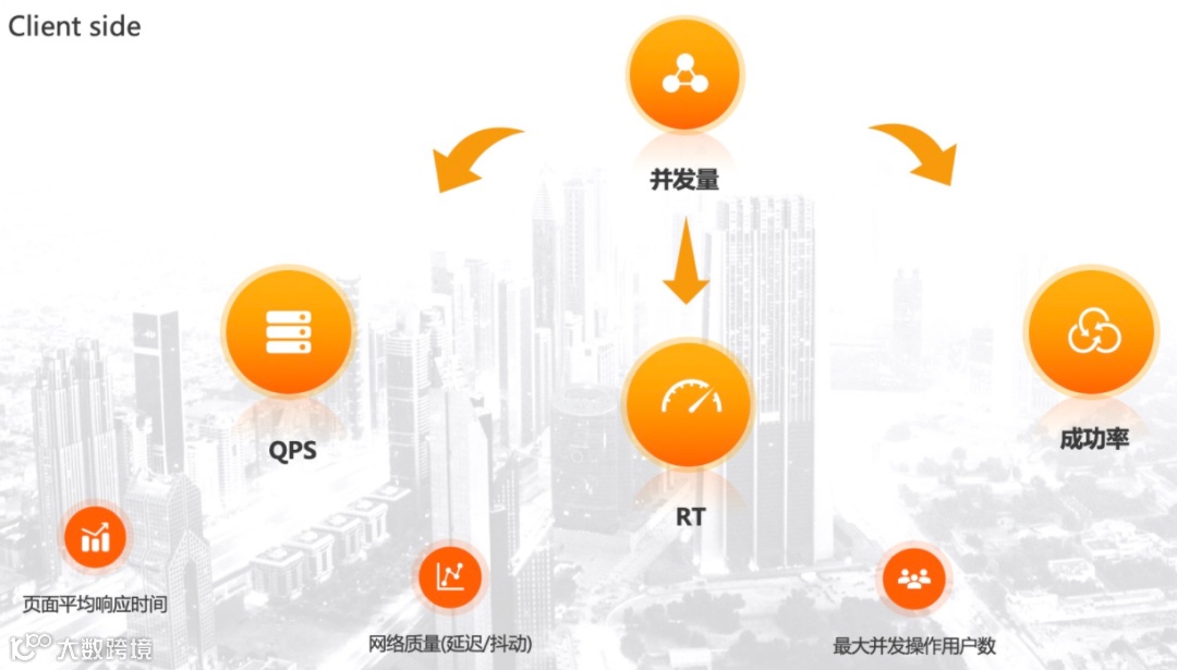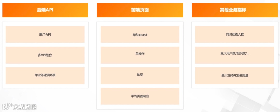 如果你提供的是一个在线的网页服务,那用户可能关心的是,你的系统在保证不察觉卡顿的情况下(系统的SLA, 实际可能容忍存在偶发的页面错误重试)能承受多少人并发使用。