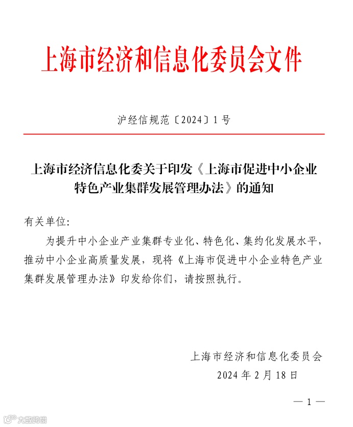 3月4日,链向科技集团从上海市政府网站了解到,近日,上海市经济和信息化委员会印发《上海市促进中小企业特色产业集群发展管理办法》(下称《管理办法》)。