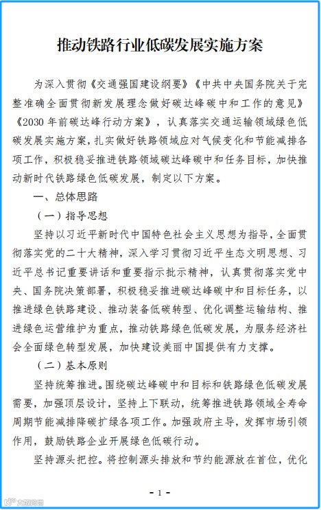 《实施方案》指明了铁路行业低碳发展的指导思想和基本原则,提出了总体目标和主要指标,并从5方面提出12条重点任务。