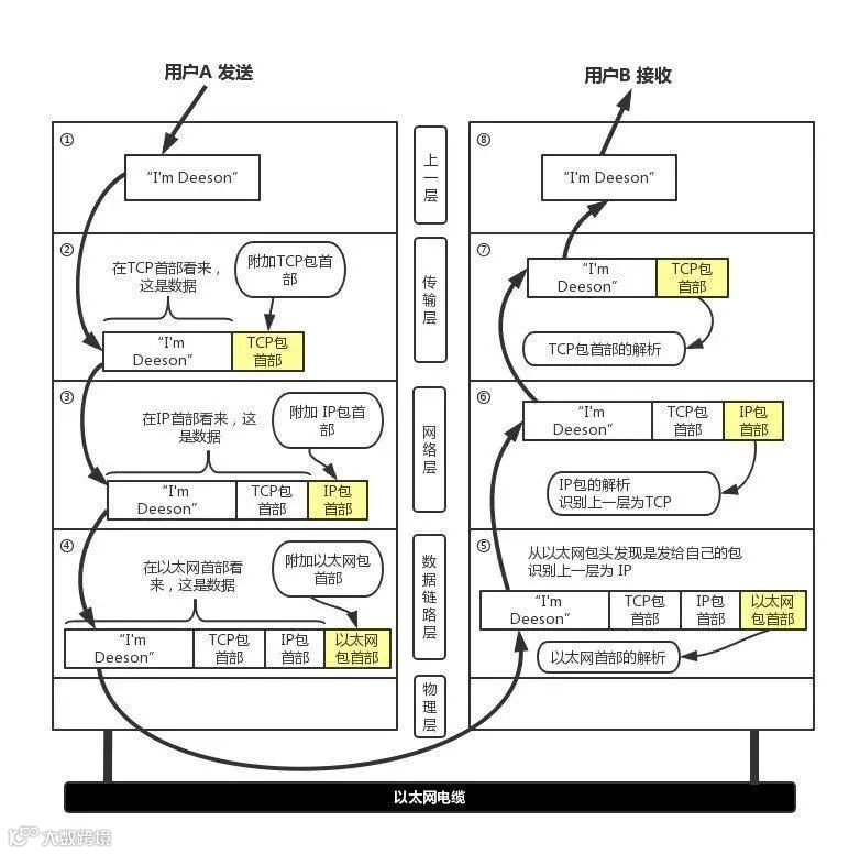 接收方收到数据后,同样的,每一层也会解析其首部字段,直到应用层收到相应的数据。