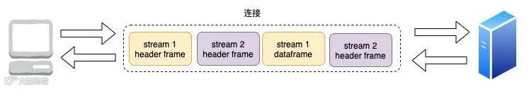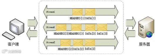 如图示,一个连接里多个流可以同时收发请求-应答数据帧,每个流中数据包按序传输组装