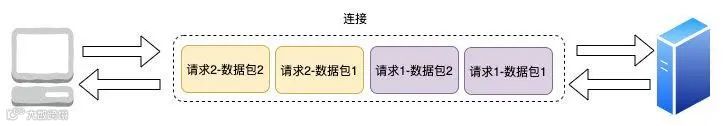 如图示,在 HTTP 2 中,两个请求同时发送,可以同时接收,而在 HTTP 1.1 中必须等上一个请求响应后才能处理下一个请求