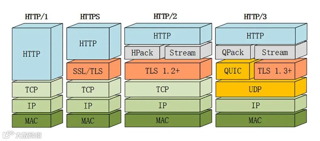 可以看到不管是 HTTP 2 还是 3 它们底层都支持用 TLS,保留了 HTTPS 安全的特性,这也可以理解,在互联网发展如此迅猛的今天,各大企业也越来越重视通信安全。