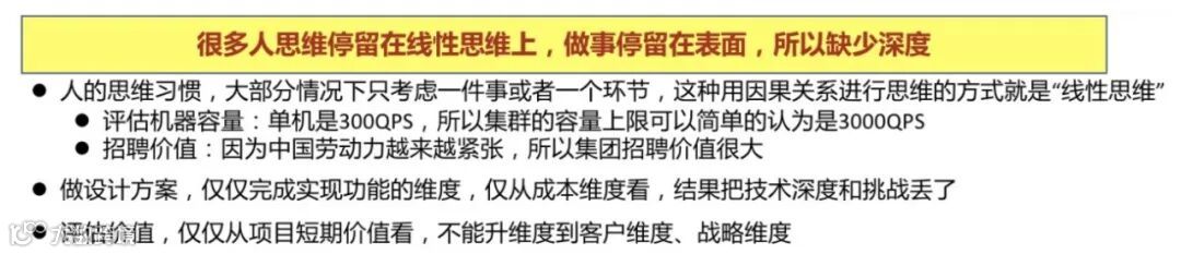 对技术要有严格的逻辑思维,对每个链路的架构设计,对每个分层的复用架构,对每个名词,都要思考逻辑是否正确。