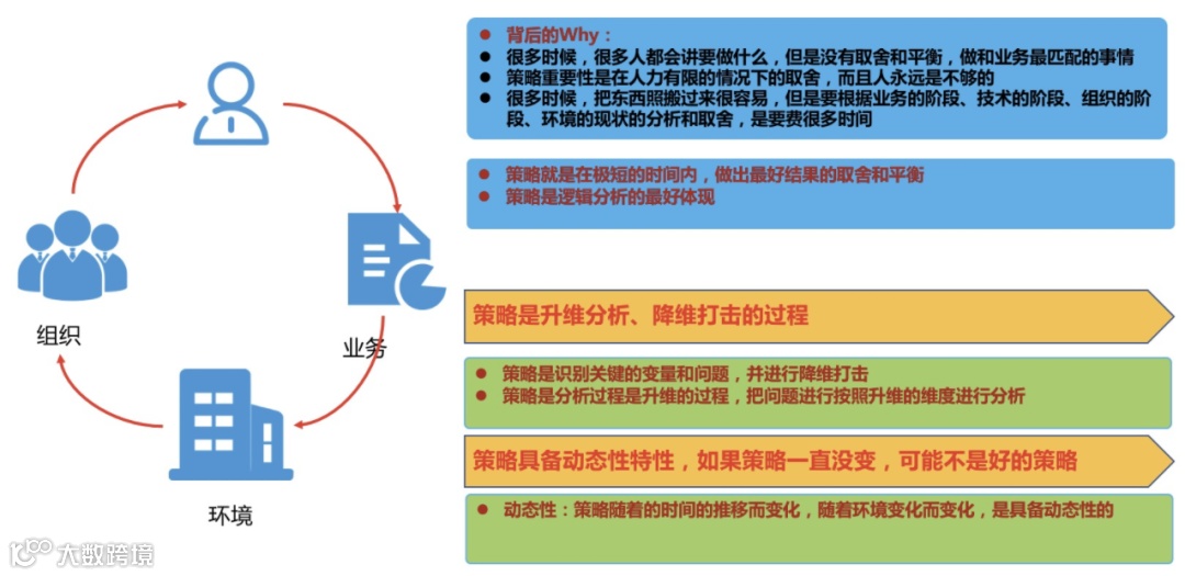 在不同的业务做实例化的架构和策略:要有逻辑的解构,把关键的点找到,并有逻辑地定义问题和制定策略,用四两拨千金的方式去拿到关键结果,把关键的问题解掉。