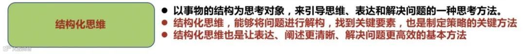 解构:将问题进行解构,可以形成完整的思维闭环,处理事情也不会形成遗漏。例如做资金安全的保障,要从事前、事中、事后的结构来解决资金安全的问题,往往不会形成遗漏,方案也更加清晰。
