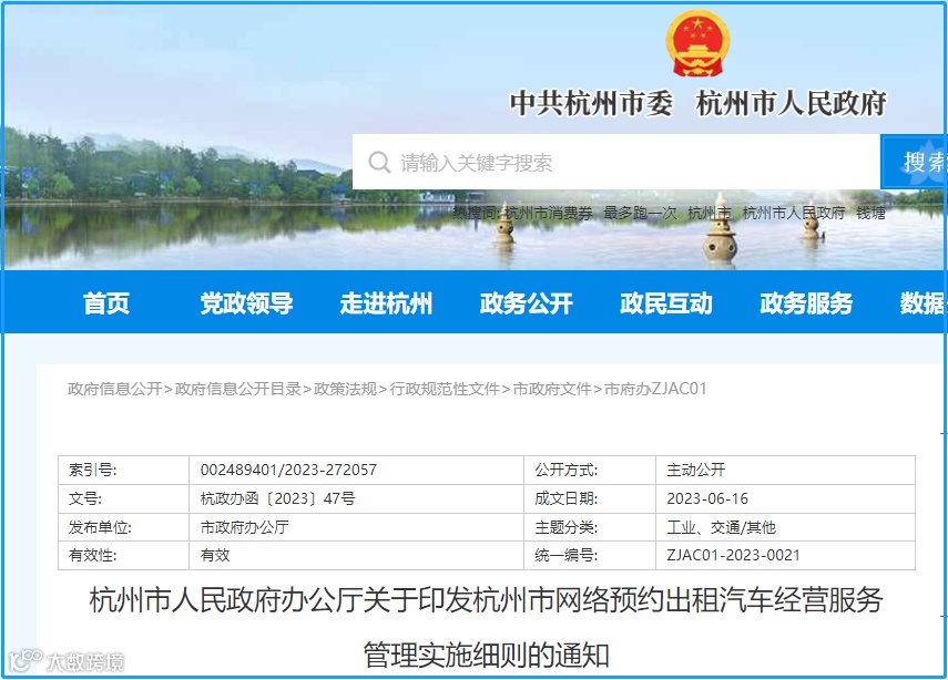 ▲杭州市政府网站截图