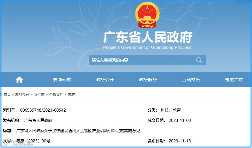 11月13日,链向科技集团从广东省政府网站获悉,近日,广东省人民政府发布关于加快建设通用人工智能产业创新引领地的实施意见。