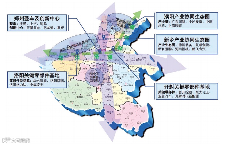 《规划》提出了氢能发展的空间布局,近期拟重点打造“一轴带、五节点、三基地”的郑汴洛濮氢走廊,即郑汴洛濮氢能应用示范轴带,郑州、开封、洛阳、新乡、濮阳五大产业支撑节点,豫北、豫西北、豫中南三大氢能供给保障基地,形成辐射带动河南、串联陕西“氢能产业集群”、山东“鲁氢经济带”的黄河中下游氢能产业发展格局,远期沿京港澳、连霍高速延伸,构建“十字形”发展轴,在全国氢能发展格局中承接东西、贯通南北的枢纽作用更加凸显。