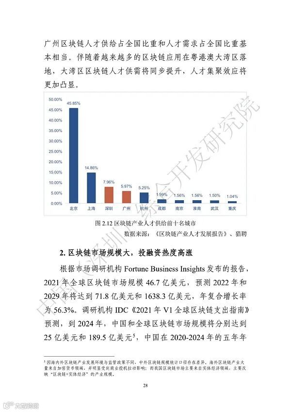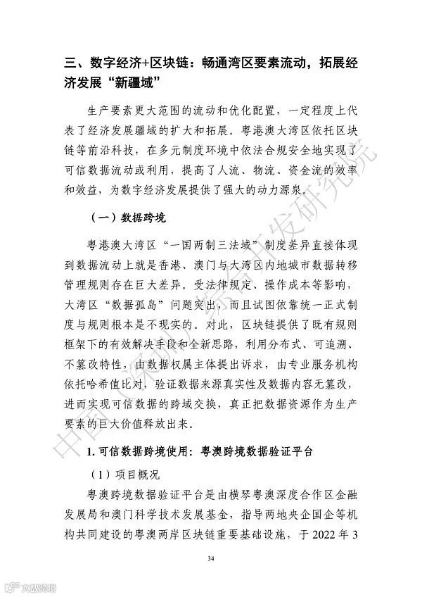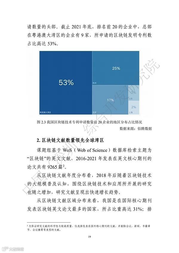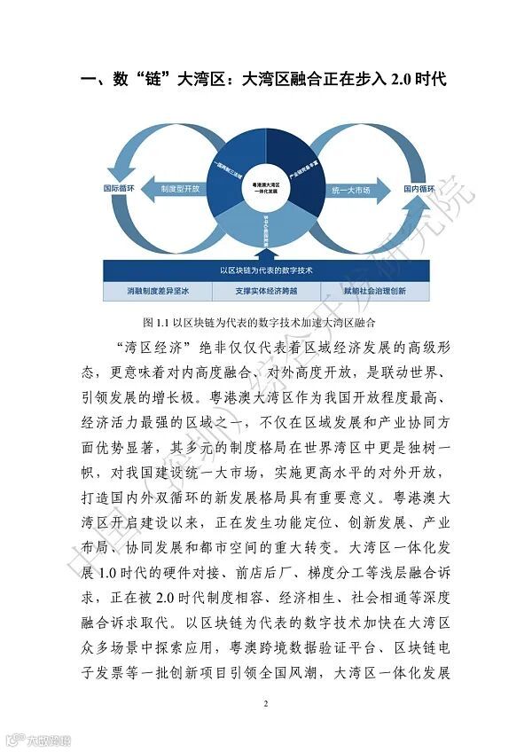 7月19日,中国(深圳)综合开发研究院(下称“综研院”)主办的《数“链”大湾区——区块链助力粤港澳大湾区一体化发展报告(2022)》发布会在深圳举行。报告提出,以区块链为代表的数字技术在破解粤港澳大湾区制度差异坚冰、支撑实体经济跨越和赋能社会治理创新等方面能够发挥重要作用,可有力助推粤港澳大湾区一体化发展步入2.0新时代。