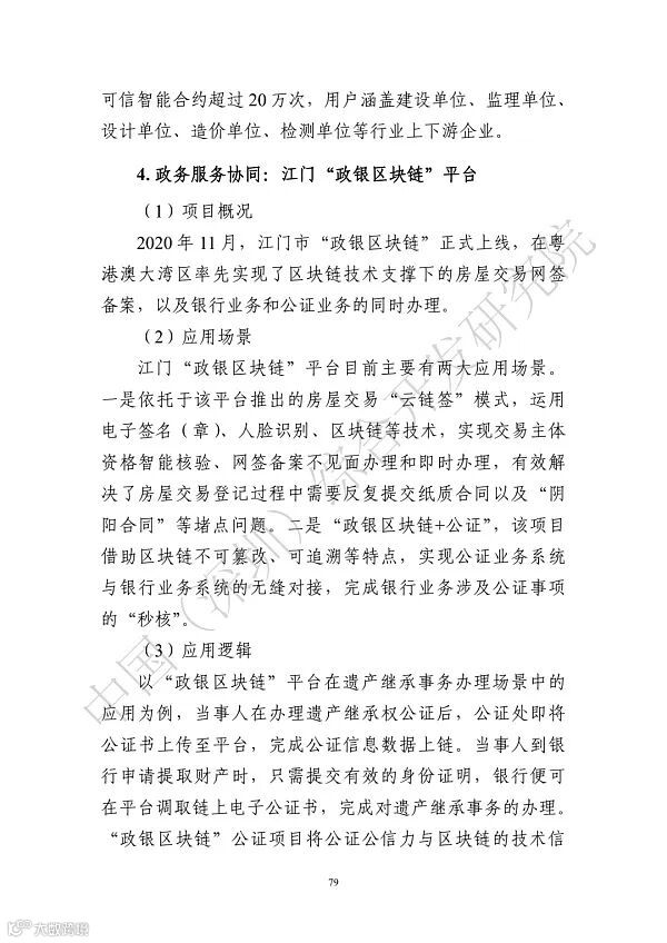 报告以丰富的区块链应用场景实践案例,展示了区块链在数字经济、数字社会、数字政府建设方面的作用和贡献。