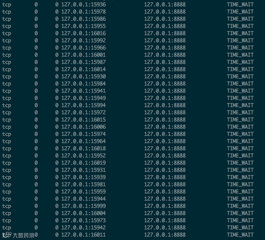 模拟高并发的场景,会出现批量的 TIME_WAIT 的 TCP 连接: