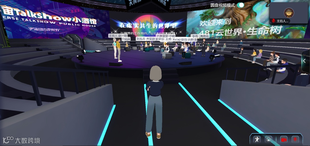 首次来到大创智“元宇宙”,先设计一个自己的3D形象,接着就能进入“元宇宙”空间自由探索了。在虚拟大厅,人们三三两两地聚集在各个角落,交流着灵感与创意。在这里,可以与同事、伙伴进行语音互动,但只有当你走近他们时,才能听到谈话内容,这一点与现实中十分相似。