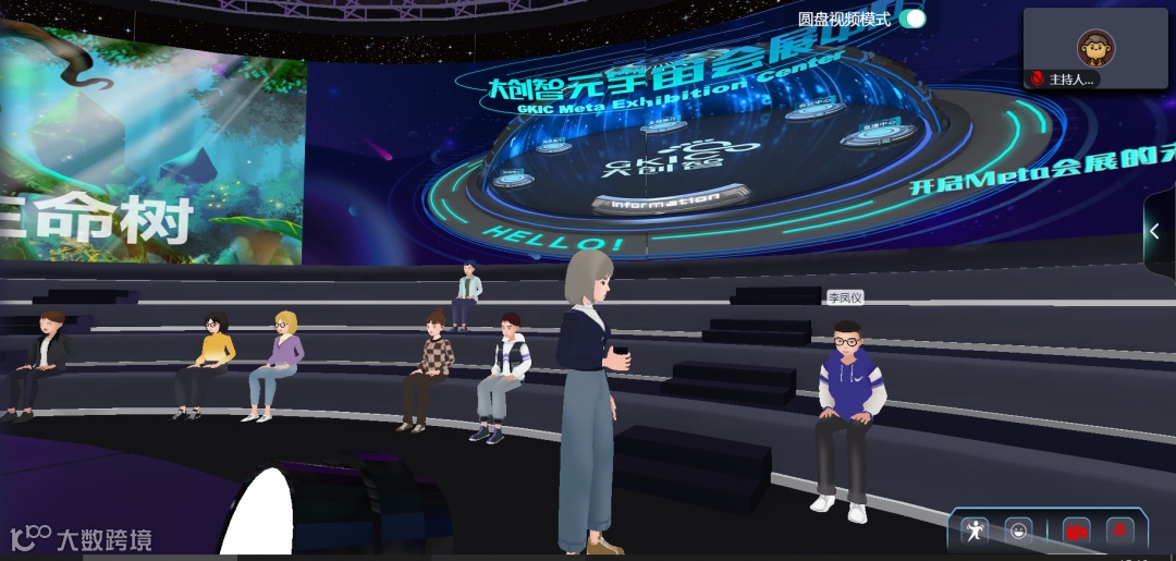 沿着通道继续向前走,远远就能看到演播大厅内正在举办一场大型活动。原来,这是大创智数字公园元宇宙创新场景大赛的决赛现场。活动由大创智创新发展示范区办公室、科创集团联合主办,脉策科技、AECOM承办。来自企业、高校、社会的5支团队正依次上台,介绍自己的项目内容。