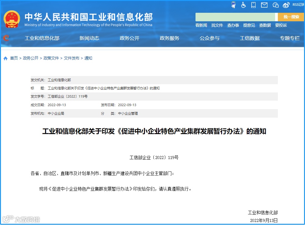 9月13日,链向科技从工信部网站获悉,近日,工业和信息化部印发《促进中小企业特色产业集群发展暂行办法》,提出“十四五”期间,在全国范围内认定200个左右集群,引导和支持地方培育一批省级集群。