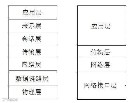 基于TCP/IP的参考模型将协议分成四个层次,它们分别是链路层、网络层、传输层和应用层。下图表示TCP/IP模型与OSI模型各层的对照关系。
