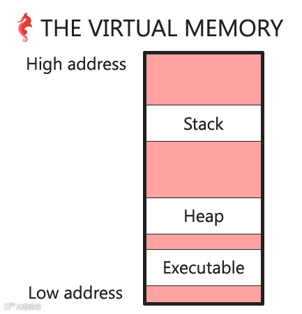 不同操作管理有着不同的管理虚拟内存的方式,但大多数操作系统的虚拟内存结构如下图: