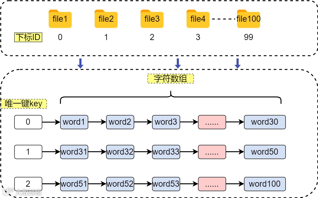 解析每个文档的关键字并生成<关键字,文档ID,关键字位置>。这里的关键字位置主要是为了检索的时候显示关键字前后信息