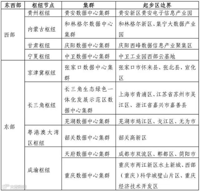 近日,国家发改委、中央网信办、工信部、国家能源局四部门联合发布复函,同意京津冀地区、长三角地区、粤港澳大湾区、成渝地区启动建设全国一体化算力网络国家枢纽节点。至此,八大枢纽节点均已完成批复,各个枢纽节点集群起步区边界明确(如表)。起步区获批建设,是落实“东数西算”战略的重要起步。
