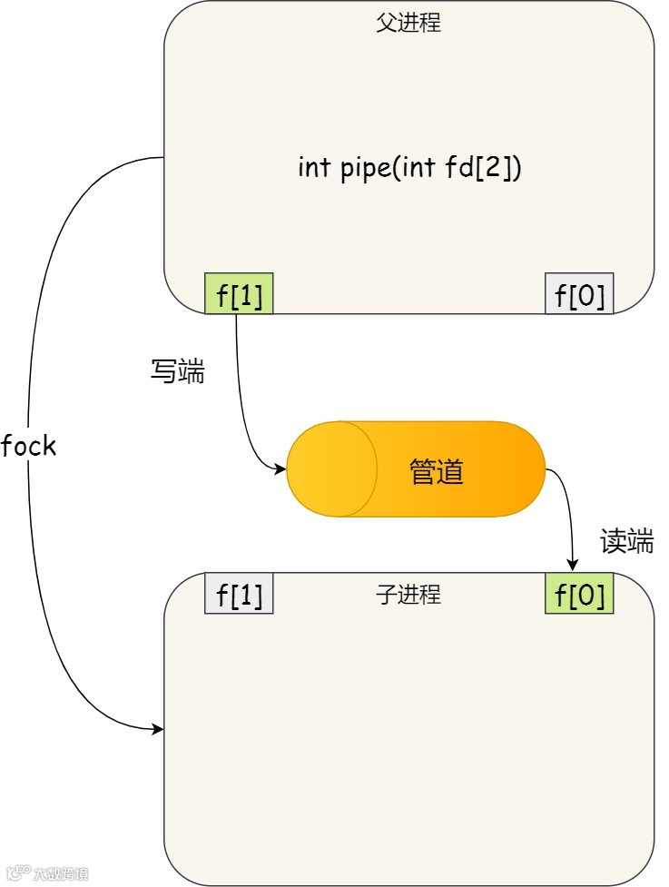 我们可以使用 fork 创建子进程,创建的子进程会复制父进程的文件描述符,这样就做到了两个进程各有两个「 fd[0] 与 fd[1]」,两个进程就可以通过各自的 fd 写入和读取同一个管道文件实现跨进程通信了。