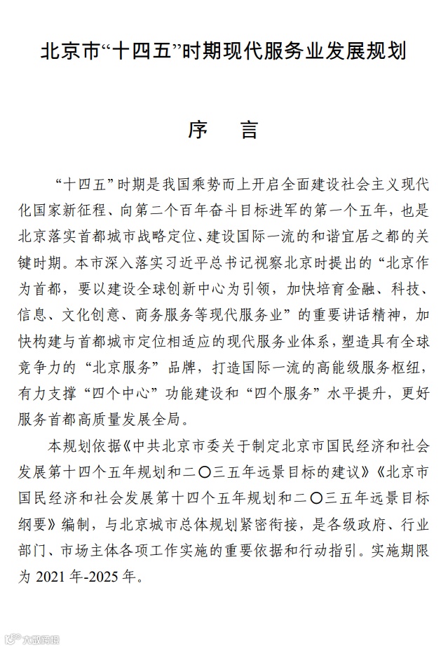 戳【阅读原文】,可查看和下载《北京市“十四五”时期现代服务业发展规划》全文