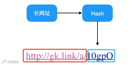 怎样才能生成短链,仔细观察上例中的短链,显然它是由固定短链域名 + 长链映射成的一串字母组成,那么长链怎么才能映射成一串字母呢,哈希函数不就用来干这事的吗,于是我们有了以下设计思路
