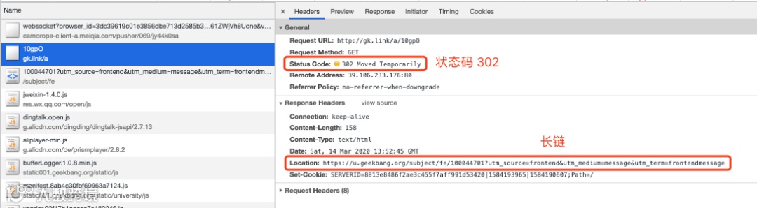 从上文可知,短链好处多多,那么它是如何工作的呢。我们在浏览器抓下包看看