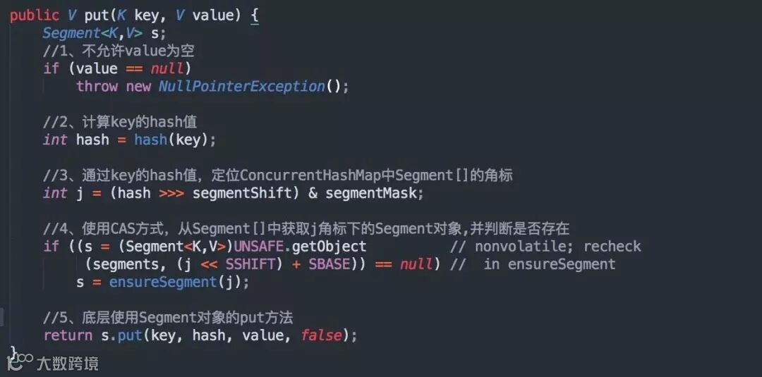 ConcurrentHashMap 的 put 方法,源码如下: