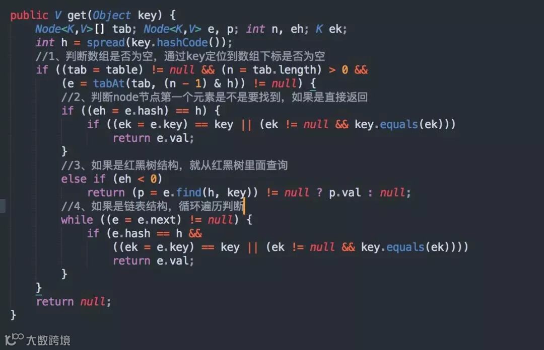 get 方法操作就比较简单了,因为不涉及并发操作,直接查询就可以了,源码如下: