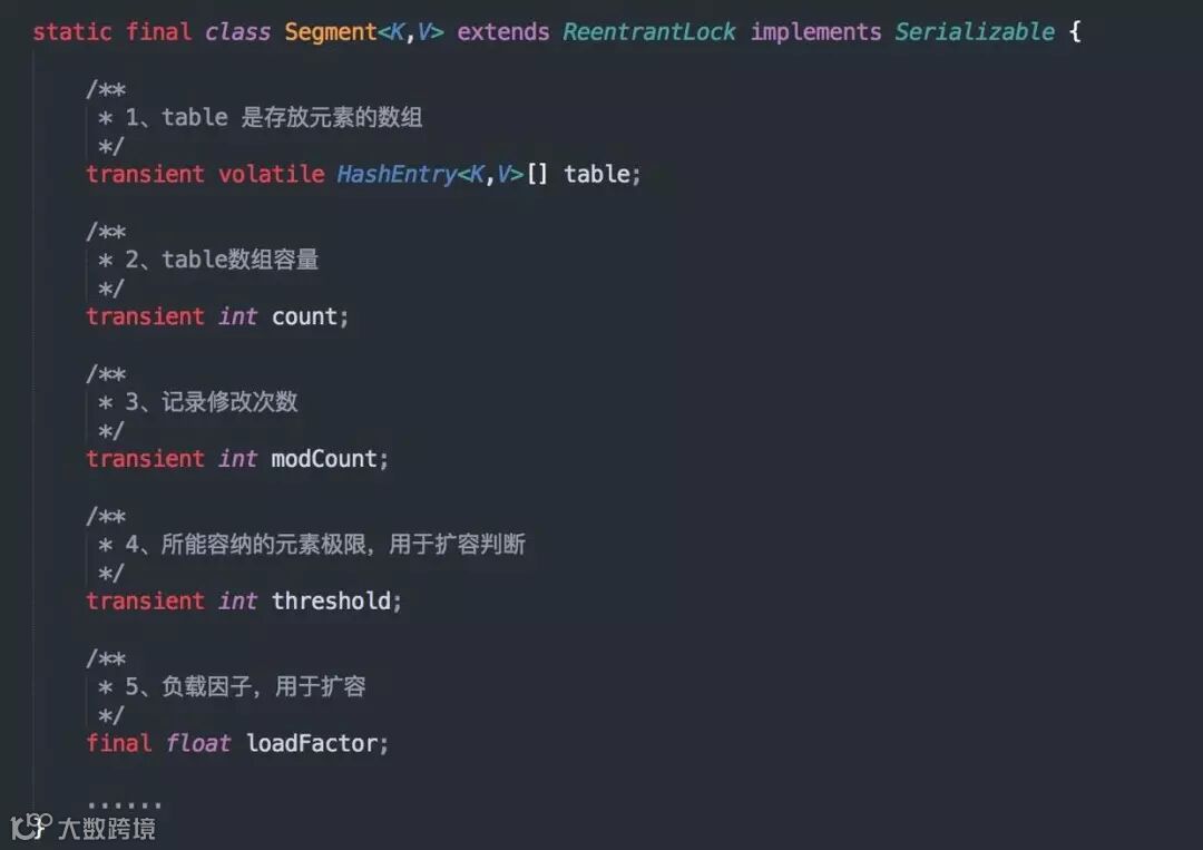 我们再来看看 Segment 这个类,在 ConcurrentHashMap 中它是一个静态内部类,内部结构跟 HashMap 差不多,源码如下: