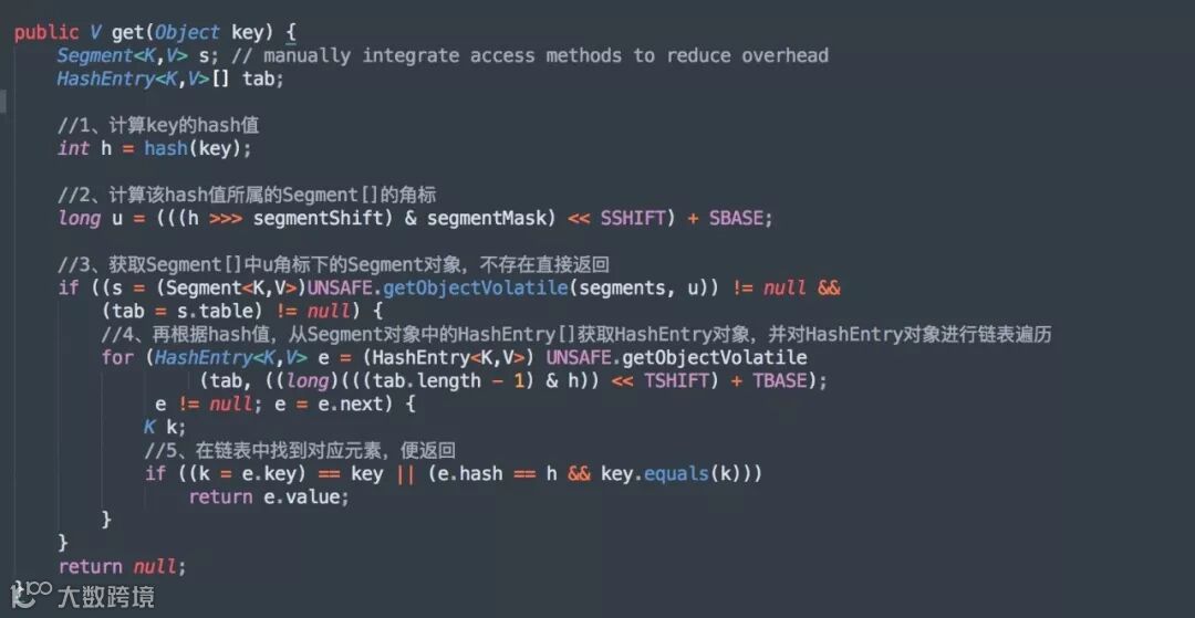 get 方法就比较简单了,因为不涉及增、删、改操作,所以不存在并发故障问题,源码如下: