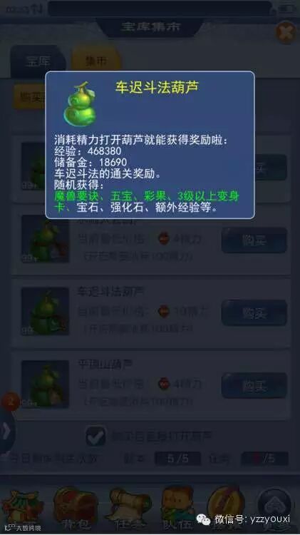 这里教大家开葫芦的一个方法。不知道大家知道不。开车迟的话跟我图中一样有储备金的话是100%得东西的。只有经验的话就是几率了。我副本葫芦只开车迟。然后其他开的都是师门了。又得门贡。又得储备金。一举两得