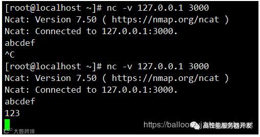 1[root@localhost ~]# nc -v 127.0.0.1 3000