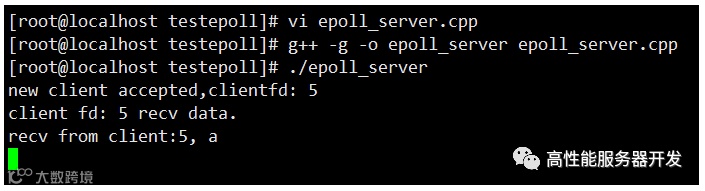 1[root@localhost testepoll]# g++ -g -o epoll_server epoll_server.cpp
