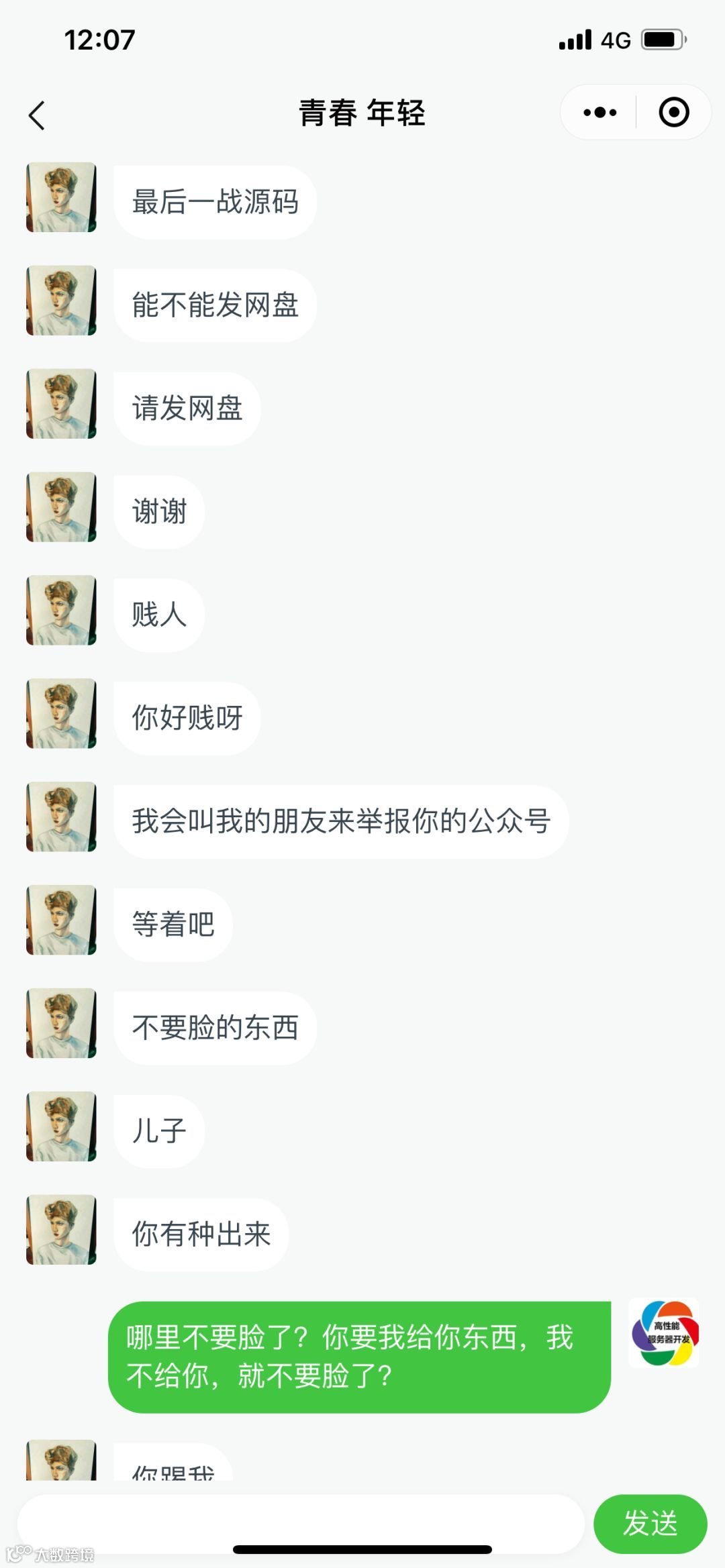 后来,这个人就加了我的群,上来就咋咋呼呼要源码,感情别人都欠他的似的。我就给他踢出群了,于是乎:
