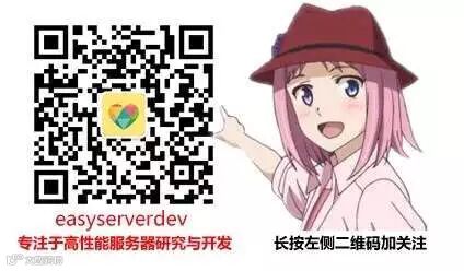 欢迎关注公众号『easyserverdev』。如果有任何技术或者职业方面的问题需要我提供帮助,可通过这个公众号与我取得联系,同时,您也可以加入我的 QQ 群578019391。此公众号不仅分享高性能服务器开发经验和故事,同时也免费为广大技术朋友提供技术答疑和职业解惑,您有任何问题都可以在微信公众号直接留言或到群里提问,我会尽快回复您。