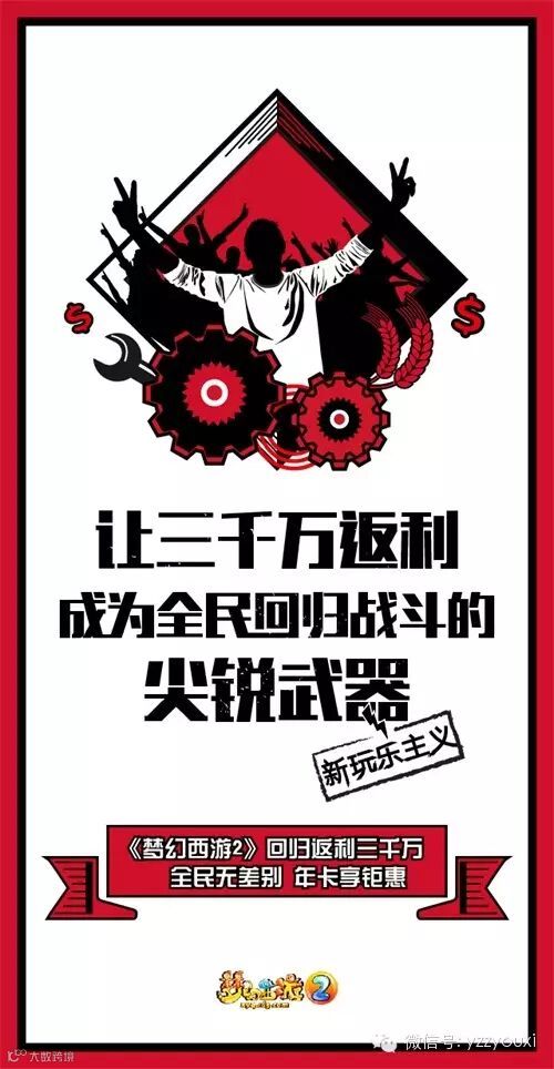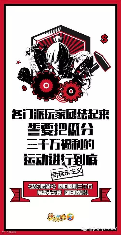 除了“一句话点评海报”系列之外,梦幻还为我们推出了颇具怀旧风格的系列海报,以前缘老玩家、原回流玩家以及全民玩家三个不同团体的利益出发,诠释本次回流活动所能为你带来的丰厚收益。前卫的元素、让人无法抗拒的标语,相信会让不少玩家为之怦然心动!