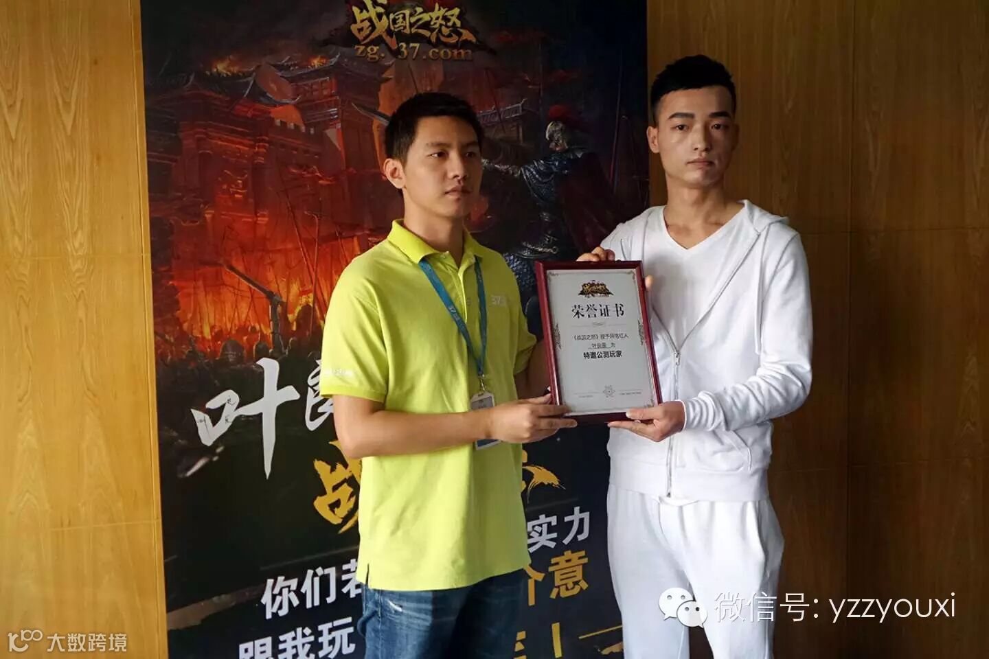 良辰接受37游戏颁发的《特邀公测玩家》荣誉证书
