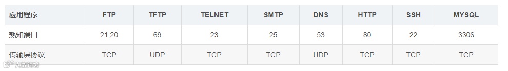 常用的熟知端口号
