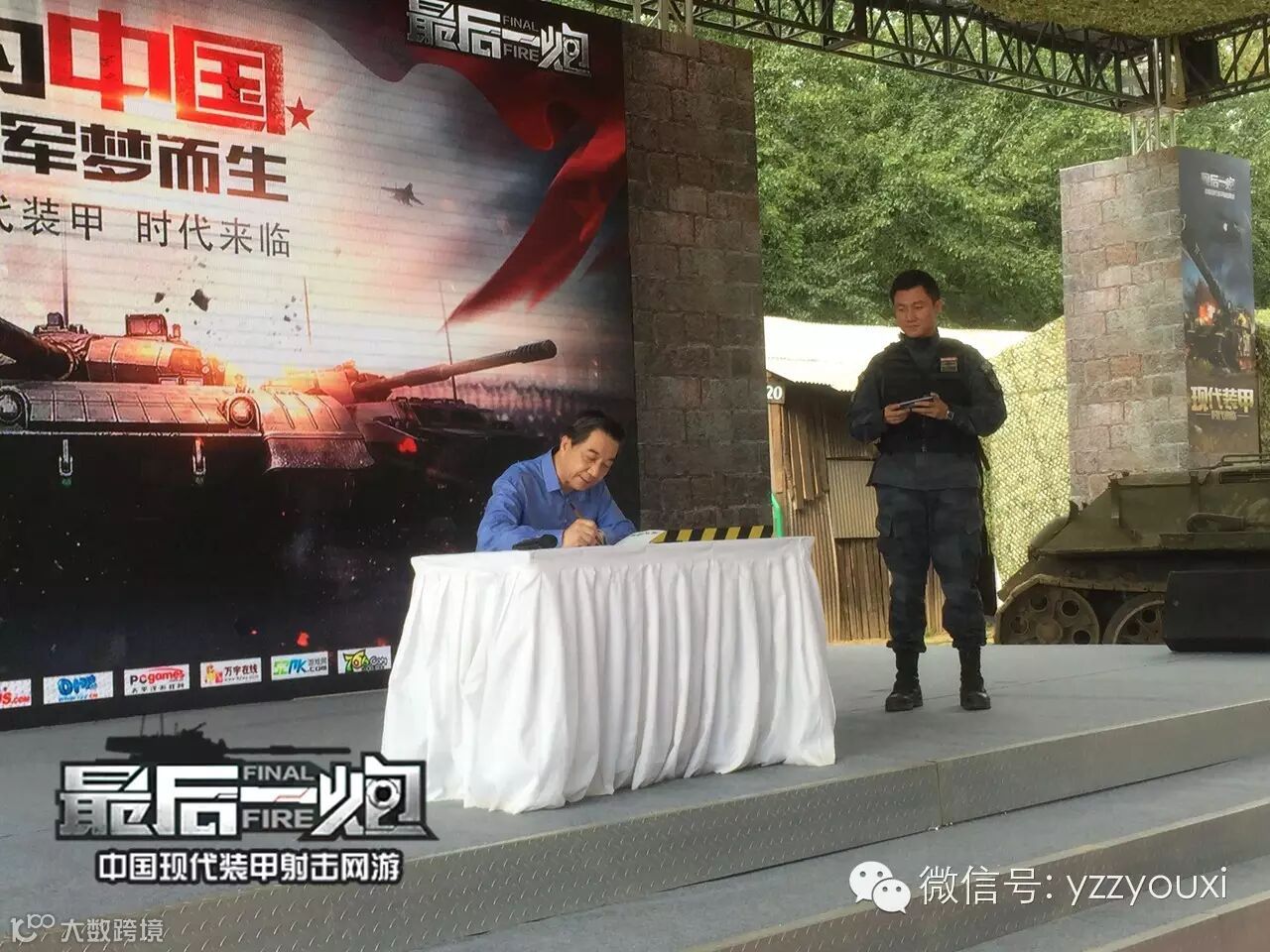 8月27日,中国现代装甲射击网游《最后一炮》在北京八一影视基地举办现代装甲发布会。国内知名军事评论家张召忠将军亲临现场,不仅为《最后一炮》题字助威,称赞该游戏是“军事网游翘楚”,还结合游戏内现代军事元素呼吁媒体重视国防教育。