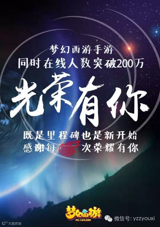 200万同时在线人数,2000万新增注册用户……这两个数据相信也不过是《梦幻西游》手游发展历程中的浮光片影,因为有你们的无限支持,我们必将走得更远。让我们在这个值得纪念的日子里,许下约定,一路同行,梦想有你!