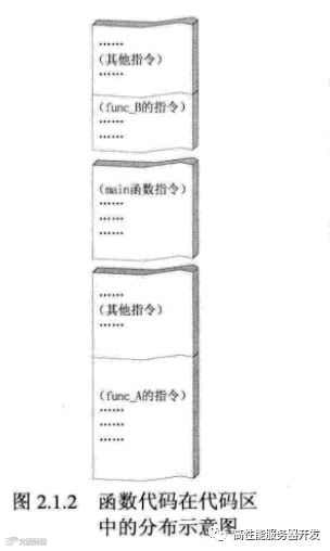这段代码经过编译器编译后,各个函数对应的机器指令在代码区中可能是这样分布的,如图2.1.2所示: